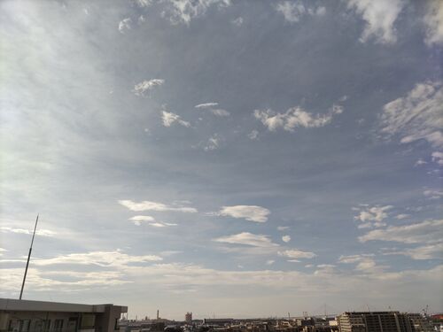 今朝。 儂が起きて来た時はまあまあいい天気。「まあまあ」っていうのは空の色がイマイチだったから。 ベランダに出たら風が吹いてたせいか暑いけどわりとさわやかな感じだった。測ってみたら温度28.8℃、湿度54%だったので納得。珍しく数字と体感が一致した…