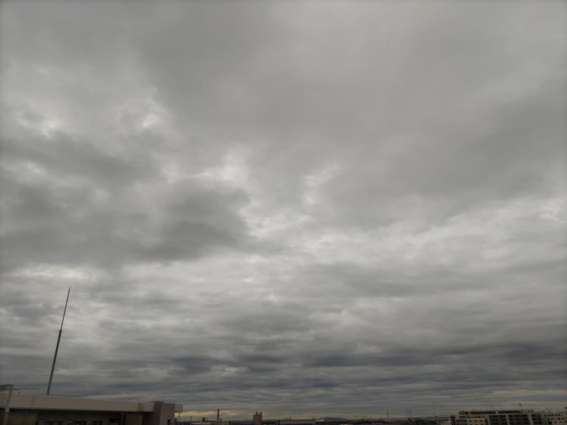 予報通りちゃんと曇り。でも、何日かぶりに灰色の中に少しだけオレンジ色が見えたし、お日様のいる辺りもかすかに明るくなってたw。