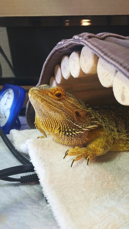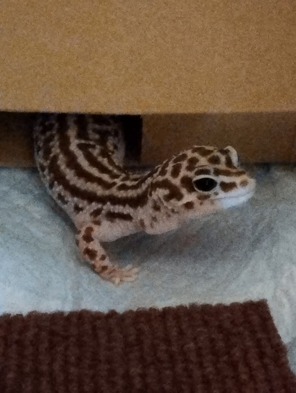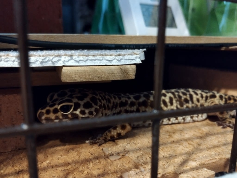 3時頃に覗いたらレプタイルヒートのところにいた。昨日は早起きw。それからは時々場所を変えつつその辺りのシェルターにいたみたい。