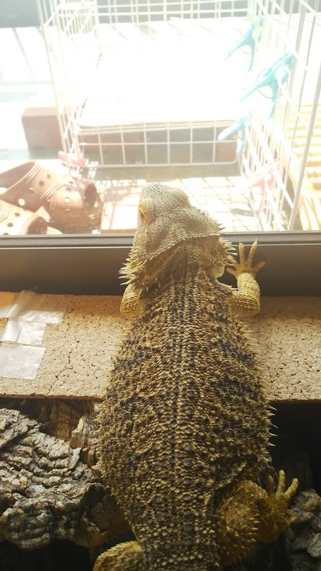 20分くらいして、やっとケージのガラスに頭を擦りつけ始めた。でも、ガラスだから滑るだけでなかなか剥けてこない。