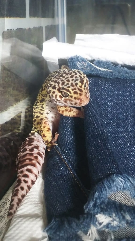 9時頃にママがコオロギの準備を始めたらシェルターonシェルターから顔を出した。スロープを入れたらすぐに登って来た。外に出してみたら胴体のあたりが少し白くなってた、日数的にもそろそろだし脱皮かも。だから出て来なくなったのかな。スロープごと別荘に運んだ。